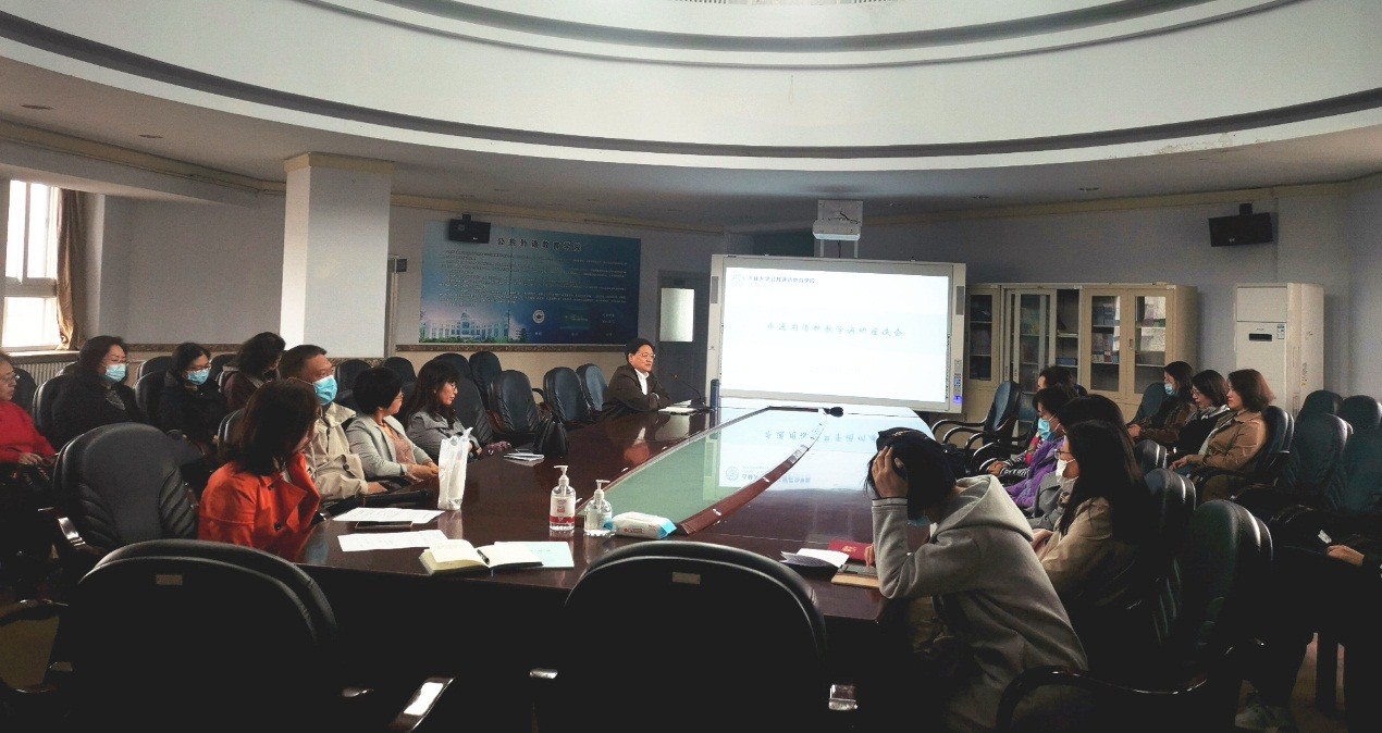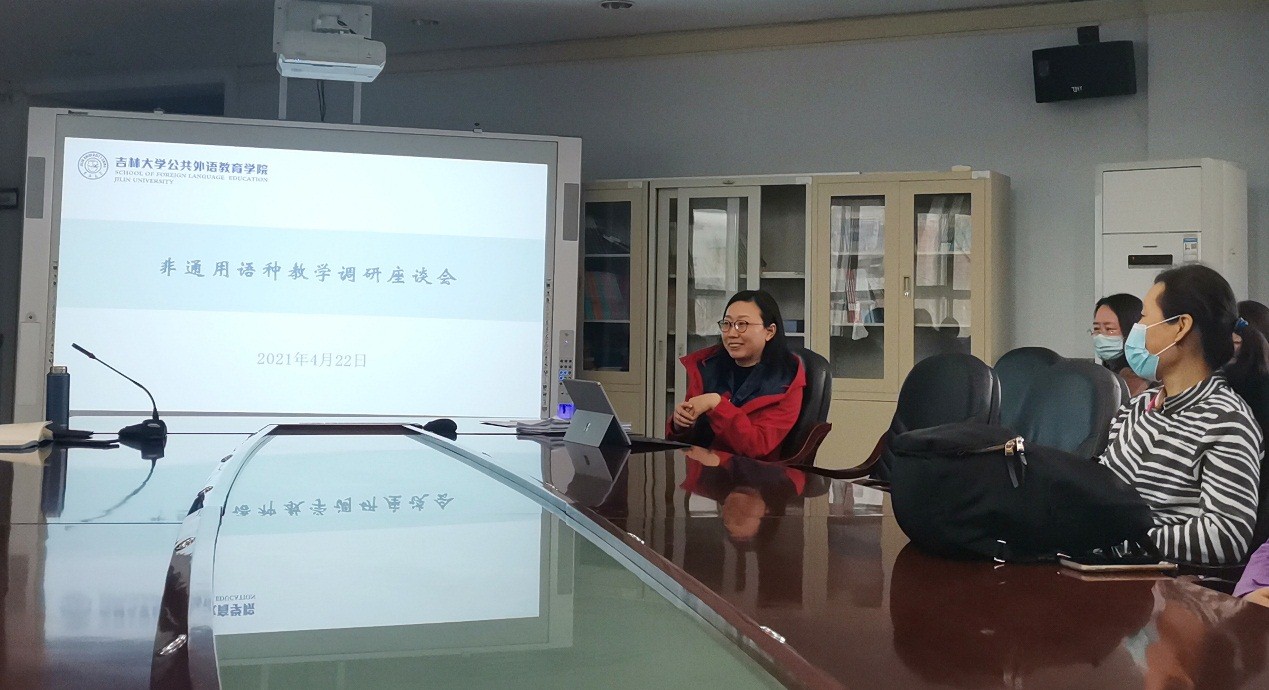 会上,我院日语教研室主任陈云哲老师、俄语教研室主任张立岩老师、德法教研室主任宋珊老师分别就教研室基本情况及近期开展的工作进行汇报。随后,我院日语、俄语、德语、法语、阿拉伯语各位老师就一带一路背景下非通用语种人才培养进行研讨,并就非通用语种教学中存在的困难及对策进行探讨。