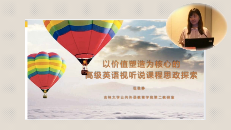 大学英语第二教研室伍思静教授分享了她在“高级英语视听说”课程中的课程思政探索。伍老师首先简单介绍了课程思政和外语课程思政,阐明外语课程思政不是外语课程与文化内容的简单相加,而是以价值塑造为核心,以学生为中心,在教学中寓价值观引导于知识传授和能力培养之中,帮助学生塑造正确三观,培养全面发展的社会主义建设者和接班人。“高级英语视听说”课程思政框架主要包括教师信念、学生中心和课程设计三个方面。教师需要有坚定的理想信念、清晰的育人意识和不断提升的育人能力;以学生为中心,以塑造学生价值观为核心,以培养三观正确的社会主义建设者和接班人为目标;课程设计上坚持目标性、一体化和达成性三个原则。在此框架之下,以“高级英语视听说”课程第五单元为例,介绍在教学设计的各个环节中如何落实课程思政内容,探讨怎样“如盐入水,润物无声”地进行学生价值塑造,培养学生四个自信。总体而言,“高级英语视听说”课程思政必须坚持“教书和育人相统一,言传和身教相统一,潜心问道和关注社会相统一,学术自由和学术规范相统一”,做到“以德立身、以德立学、以德施教”。