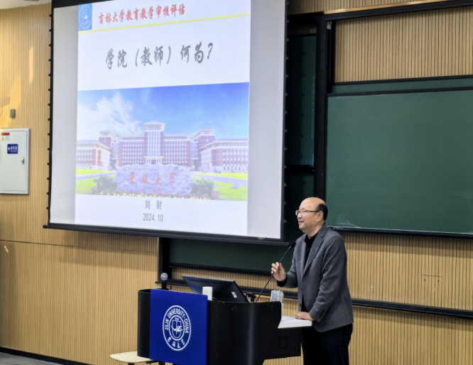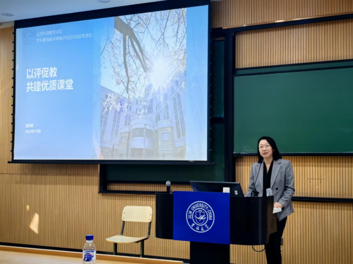 最后,学院院长潘海英教授以“以评促教 共建优质课堂”为题做总结发言。潘院长首先对审核评估相关工作进行全面部署,然后结合督学反馈及听课实际,以多个教学案例深入剖析问题,提出要以评促教,注重教学态度、课堂管理、教学内容、教学设计与方法、教学效果等多个要素,共建优质课堂。她指出,教学活动是一个复杂的过程,教师需要充分备课件、备学生、备自身状态、备教学环境、备多种教学设计与方法,认真思考整个教学过程。潘院长强调要本次评估为契机,端正教研态度、守住政治底线、守好课堂阵地,切实提升课堂教学质量。会上,潘院长传达了《中共吉林大学第十五届委员会第四次全体会议》精神,强调了校园安全问题。