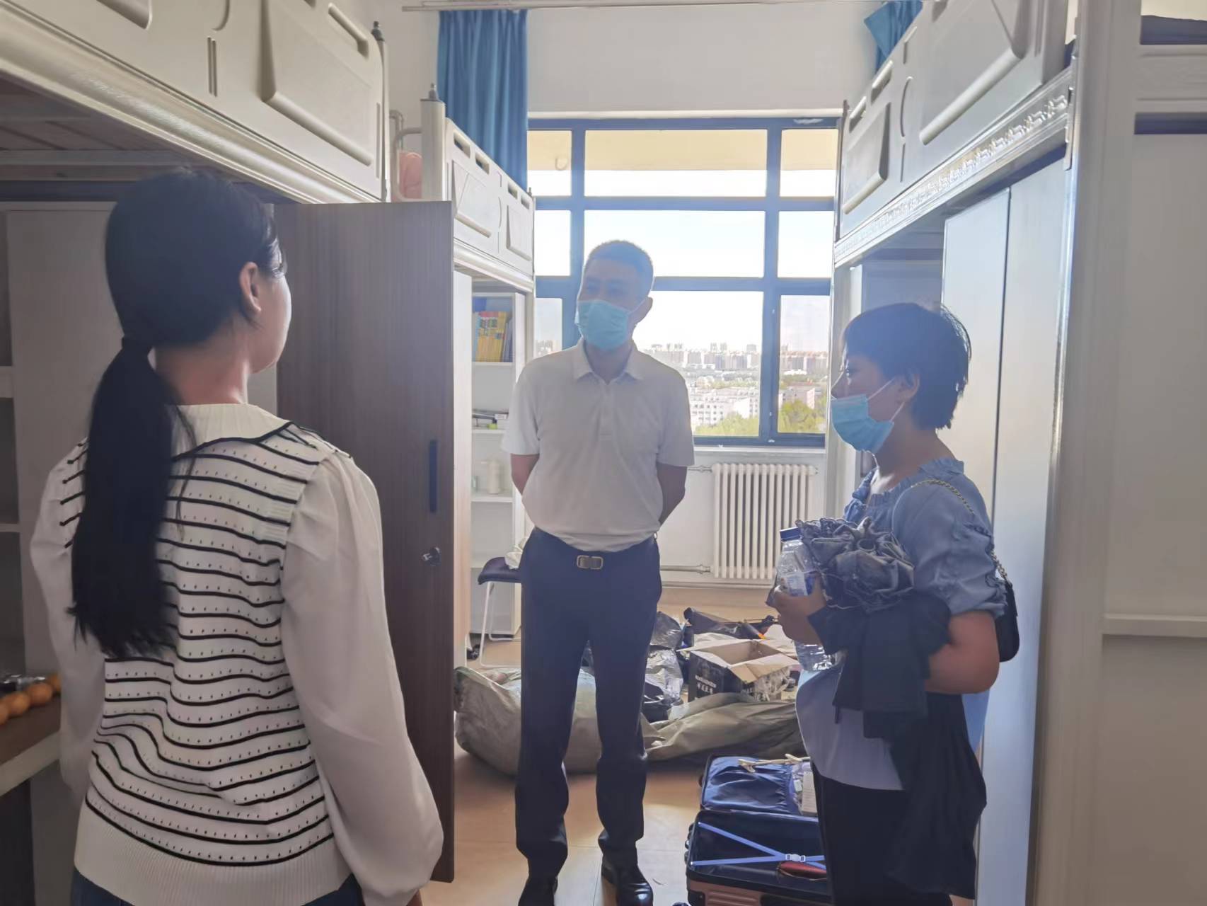 新学期,新作风,新姿态,迎新生。为进一步了解2022级研究生新生的寝室生活情况并引导大家更好更快地适应新环境,我院党委书记贺强、院长潘海英、党委副书记徐杰和辅导员曾媛于8月24日、8月25日深入新生寝室,为2022级的同学们送去温暖的问候与祝福。