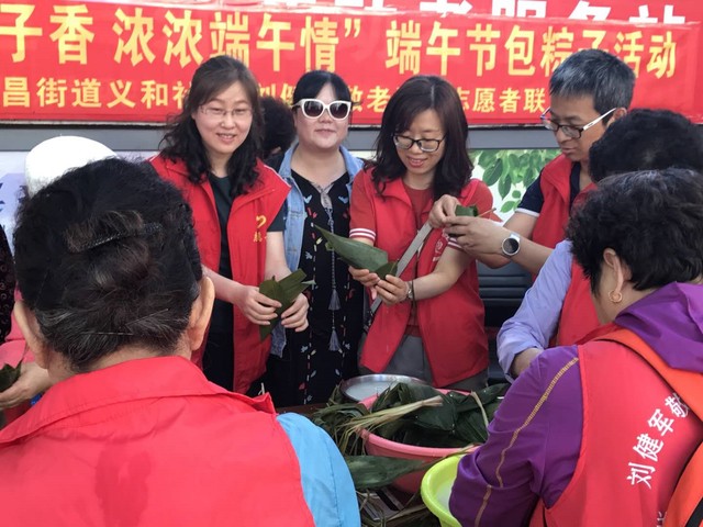 上午9点,研一支部的党员和志愿者将泡好的粽叶、糯米、蜜枣准备好后,开始热火朝天地包起粽子。大家围在桌边,一片片清香的粽叶、一粒粒晶莹的糯米,在一双双巧手下,瞬间变成了一个个诱人的粽子。大家边包粽子边话家常,整个活动现场其乐融融。研一支部的党员们和其他志愿者一起将自己亲手包的粽子送到义和社区的贫困户和孤寡老人家中。