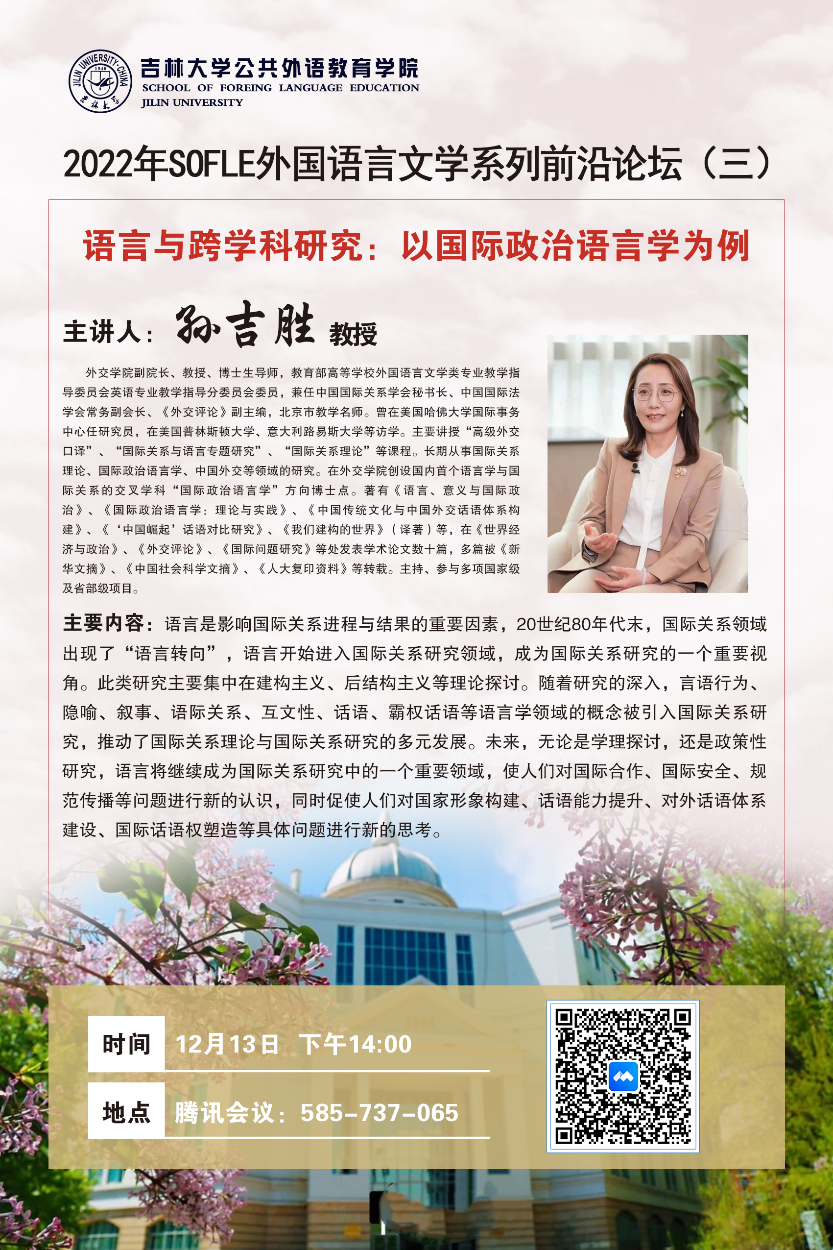 2022年SOFLE外国语言文学系列前沿论坛(三)活动预告——孙吉胜教授学术讲座