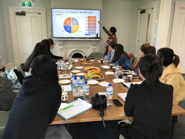 10月29日,我院师生访问了奥克兰大学孔子学院。孔子学院院长姚载瑜教授向团队师生介绍了孔子学院的发展历程及未来规划。在姚院长的介绍中,大家深深体会到中国文化走向世界的不易以及蕴含的巨大潜力,感受到汉语正在以其独特的魅力不断影响世界,丰富多彩的中华文化正在被越来越多的海外人士接受和喜爱。访问孔子学院使同学们深切感受到国家汉办为“中国故事”的讲述与中华文化的传播所作的不懈努力,也在同学们心中种下传播中国文化的种子。