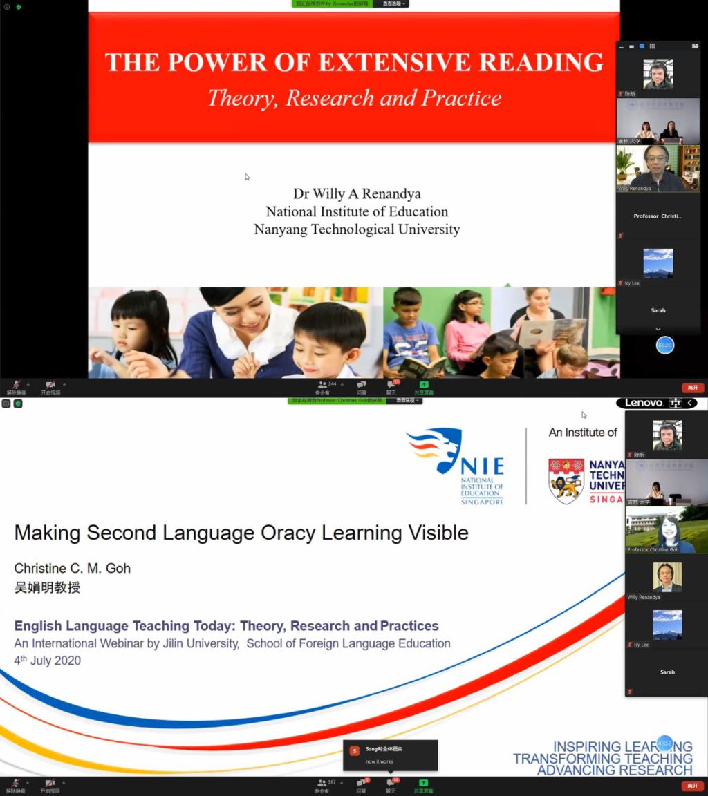 本次线上研讨关注新形势下英语教学的主要问题、最新成果、学术热点、学术动态及发展趋势,是我院推动与国内外专家学者交流合作的又一部署与举措。会议由我院教师马小浩博士主持,院长潘海英教授到会并致开幕词,副院长杜中全副教授参会。潘院长指出,公共外语教育学院历经几十年发展,目前正以吉林大学“双一流”建设为核心,不断探索外语教育新举措,加强学科建设并已取得喜人成绩,同时她也对莅临会议的各位嘉宾表达了诚挚的谢意和欢迎。上午时段,新加坡南洋理工大学国立教育学院Willy Renandya博士、Christine Goh教授、香港中文大学教育学院Icy Lee教授分别就如何进行英语泛读教学,如何进行英语听说教学,如何引导学生进行反思性写作来提升学习效果这三大问题做了精彩发言。下午时段,宝威体育在线注册姜峰教授、汕头大学文学院方帆教授、牛津大学教育学院Heath Rose博士围绕学术话语的立场表达和英语作为世界语背景下的英语使用者身份和英语教学实施路径两大话题展开讨论。六场报告精彩纷呈,触及听说读写技能、元认知与学习策略、话语能力、学习者身份、语言教学方向等多个英语教学中的核心问题,获得参会专家和师生的一致好评。与会人员对此次线上会议给予极高的评价,他们表示会议内容丰富、含金量高,对今后的教学和科研工作有极大启发,会议形式符合疫情防控工作要求,组织有序。