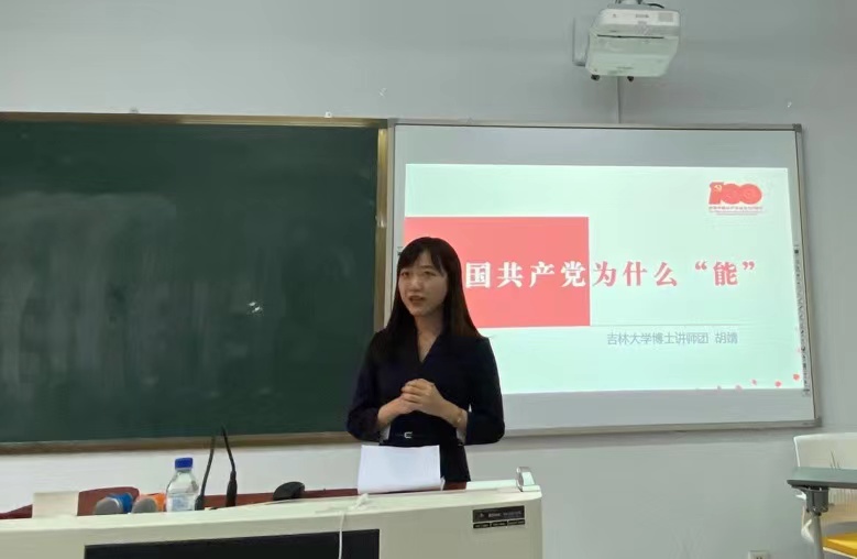 为庆祝中国共产党建党一百周年,进一步让广大研究生在党史学习教育中“明理、增信、崇德、力行”,5月24日18:30,在经信楼D401教室,吉林大学博士讲师团讲师胡靖为宝威体育在线注册学生三个党支部的全体中共党员、发展对象和入党积极分子上了一堂主题为“中国共产党为什么‘能’”的党史课,本次活动由辅导员曾媛主持。