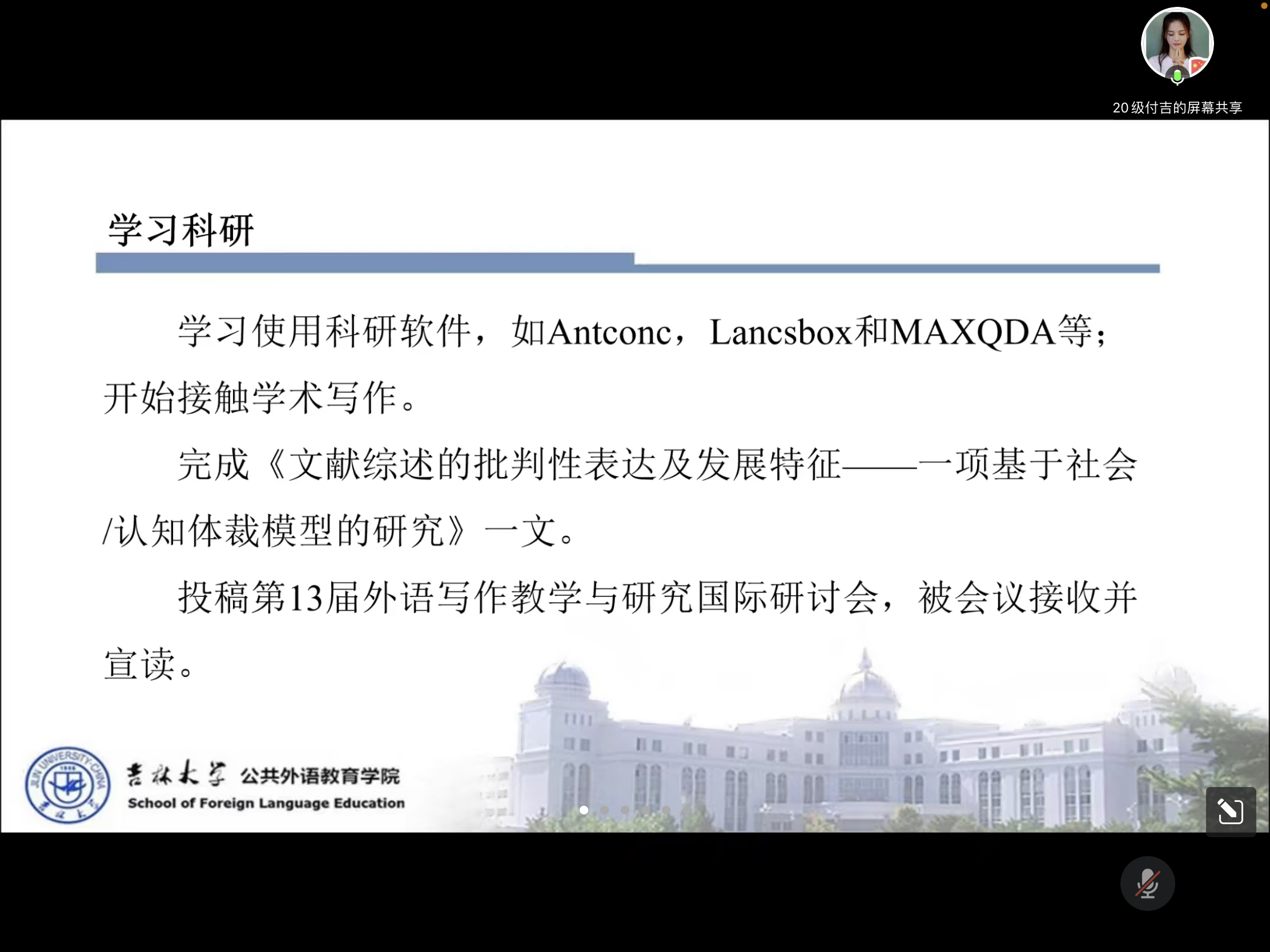 分享会后公共外语教育学院研究生辅导员曾媛为大家详细讲解了吉林大学公共外语教学院各项奖学金的评审细则,鼓励大家在读研期间,锐意进取、拼搏创新。