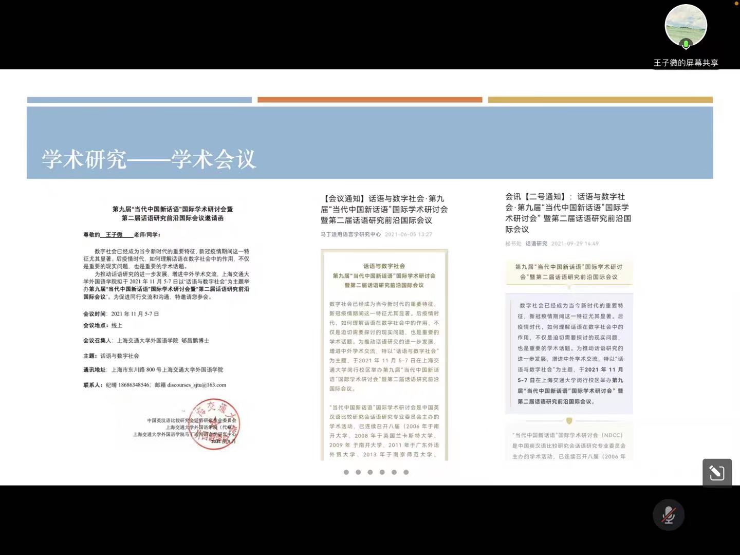 交流学习促进步,分享经验共提升。为帮助大家更好地了解国家奖学金、学习优秀研究生的精神,2022年11月16日,公共外语教育学院线上举办了研究生国家奖学金经验分享会。本次会议由公共外语教育学院研究生会学术部部长武铭伦主持,研究生辅导员曾媛出席本次分享会,特邀三名国家奖学金获奖同学分享学习经验,全体2021、2022级研究生参会。