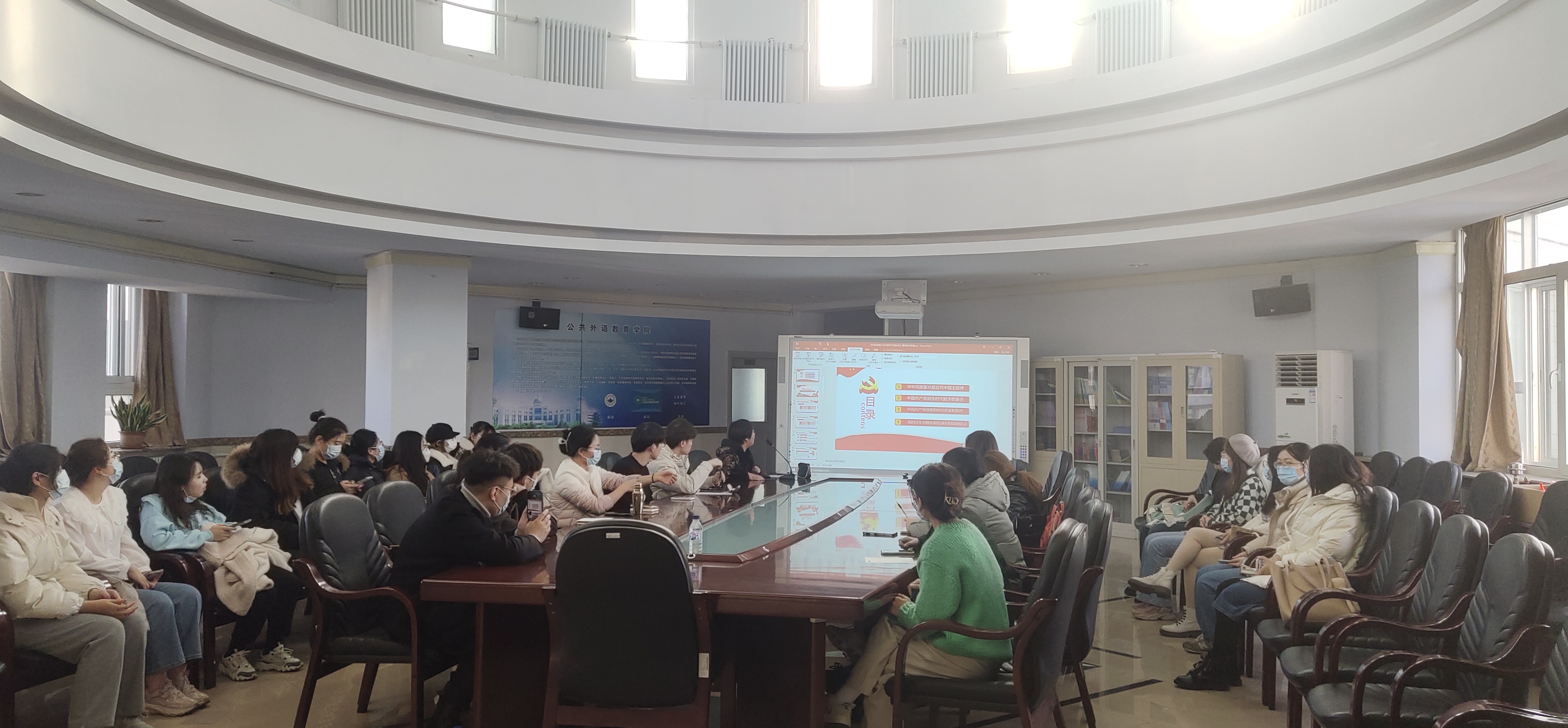 2022年11月18日下午2点,公共外语教育学院在外语楼六楼报告厅开展了以“中华民族复兴与中国共产党的成立”为主题的入党积极分子党课培训。此次党课由公共外语教育学院党委副书记徐杰主讲,研究生辅导员曾媛主持,全体入党积极分子参加。