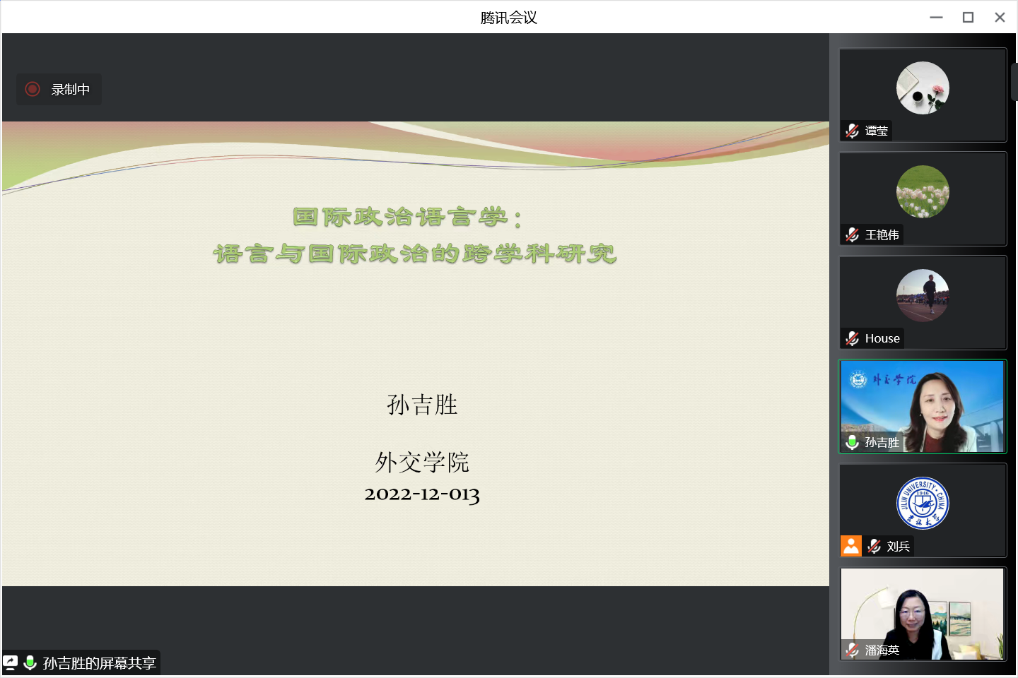 应宝威体育在线注册邀请,外交学院副院长、博士生导师孙吉胜教授,于12月13日在线进行了专题学术报告。讲座由院长潘海英教授主持,校内外广大师生参加了此次讲座。